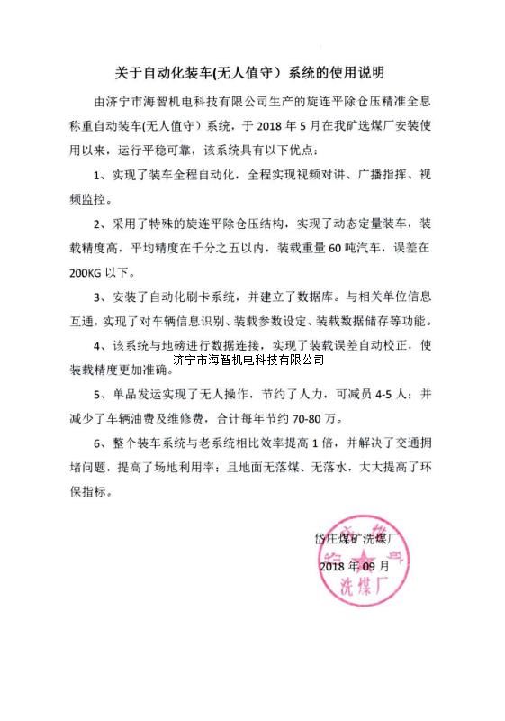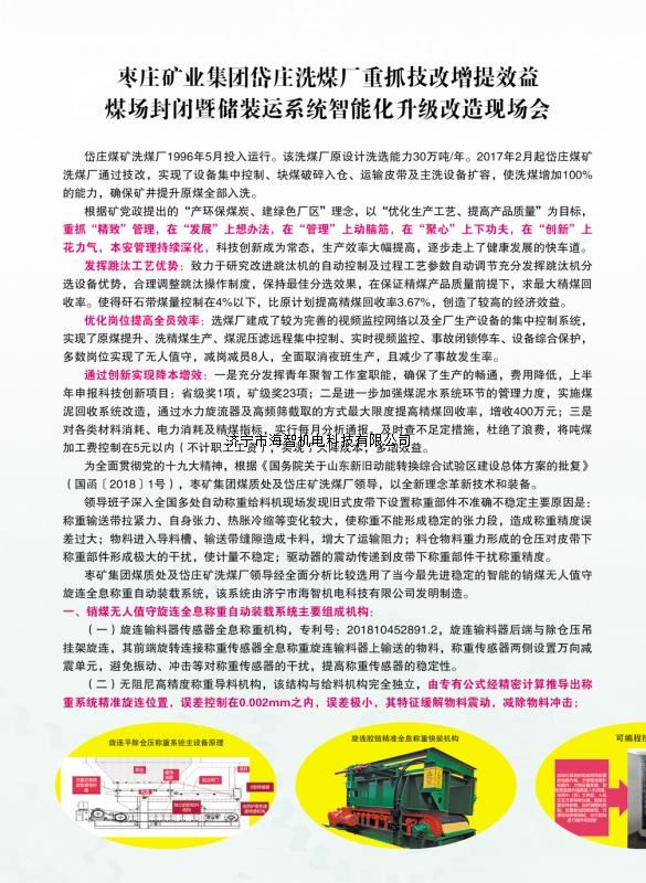 本產品一經推出即獲得各大設計院及用戶的一致好評,率先在棗礦集團岱莊煤礦取得成功應用,2018年9月受邀參加了《棗礦集團煤場封閉暨儲裝運系統(tǒng)智能化升級改造現場會》,智能裝車系統(tǒng)得到了充分肯定!我司憑借雄厚的加工制造實力及過硬的創(chuàng)新技術能力,勢必為運輸稱重系統(tǒng)、快速計量裝車系統(tǒng)帶來又一次的技術創(chuàng)新變革。
