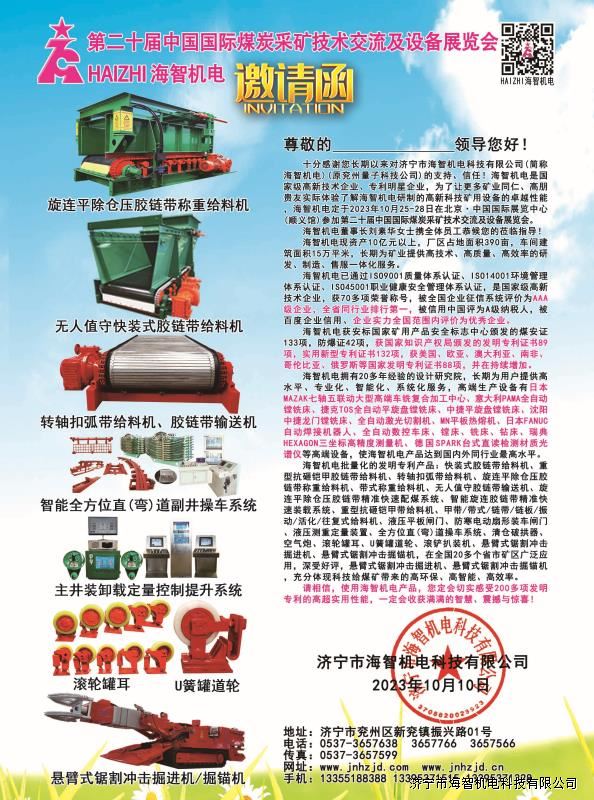 > 邀請函-第二十屆中國國際煤炭采礦技術(shù)交流及設(shè)備展覽會(huì)2023.10.25-28